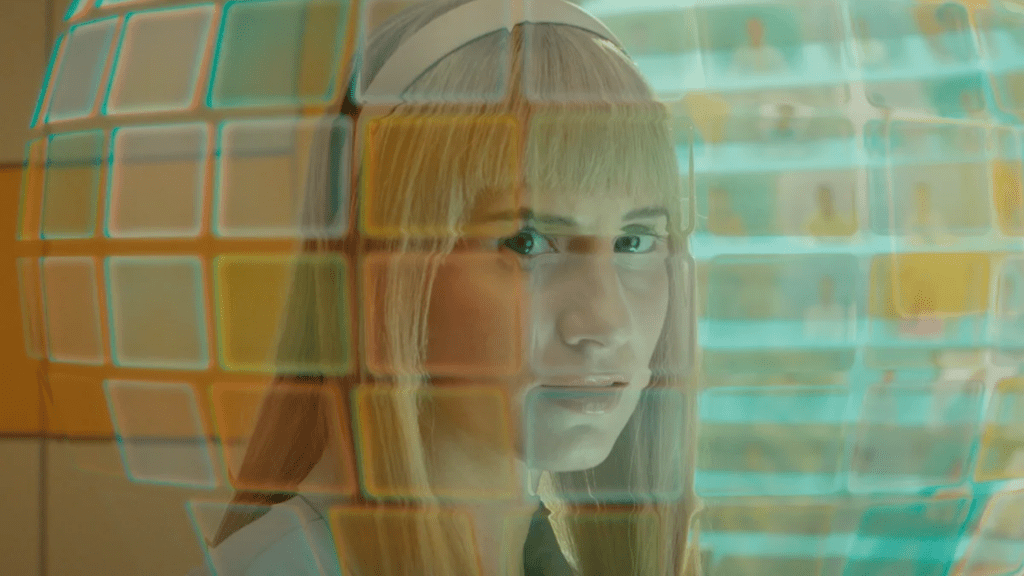 When we first meet the episode’s lead, Lindy, her life appears to be quite peachy. She’s bubbly, social, and only really has to worry about the completion of a two-hour work shift which requires zero physical or mental labour. What a lucky salmon she is! As a resident of Finetime – an enclosed neighbourhood mummy and daddy pay for her to live in – Lindy doesn’t really have to worry about anything that plagues us mere mortals. No bills, breakdowns or job losses. Heck, she doesn’t even have to learn how to walk in a straight line! Her personal Dot (a robotic device that hovers next to her temple) simulates a virtual Bubble world that caters to her every need. It connects her to her friends and guides her safely through the physical world. Think of Dot like a satnav for existence, guiding Lindy through every known process associated with being alive. It even tells her when she needs to go to the bathroom!