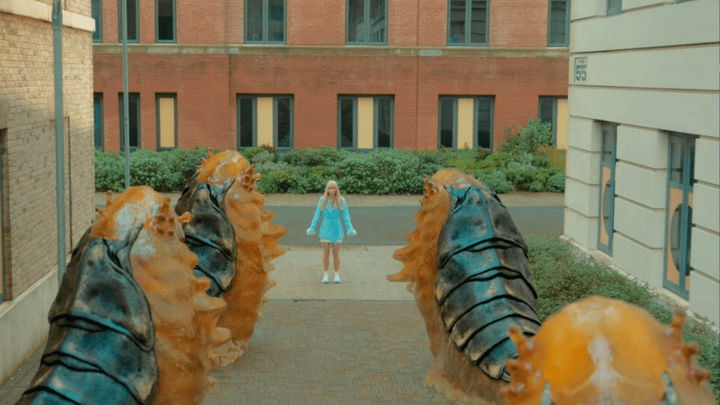 Because that is what Dot and Bubble ultimately is. It isn’t merely a case of a Davies script colliding with a Brooker concept. It is the Doctor landing inside a cynical, dystopian Netflix anthology with no happy ending. It is angry, uncomfortable, and political in a way that Doctor Who absolutely can be, but executed in a manner that masquerades as a something that tricks us into thinking it is something more positive. It’s the happy song with disturbing lyrics; a nightmare presented to us as a dream. It’s a remarkably pessimistic episode that is void of any utopian ideals, features a villain serving as our point-of-view character, and ends without offering so much as a shred of optimism. The fact it dresses itself up in such pretty clothing with exaggerated space slugs as its monster of the week is the trap it lays for us all.